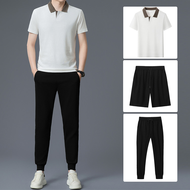 夏季新款锦氨商务休闲圆领+短裤套装